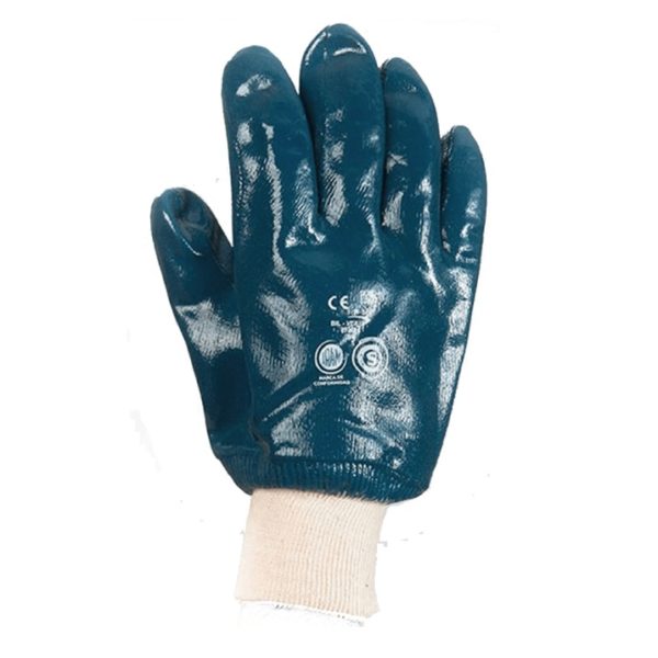 Guante recubierto de nitrilo puño tejido elastizado Interior con soporte textil Exterior liso